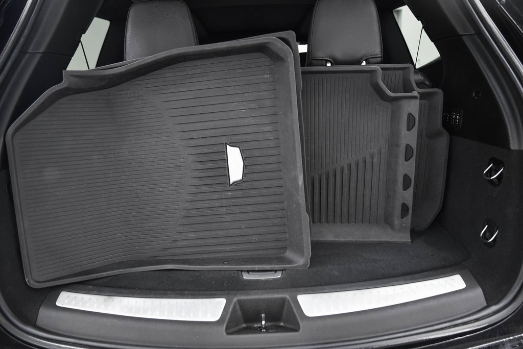 - Opens or closes when the system senses the key fob and the driver extends their foot under the left-hand side of the rear bumper over an image of the Cadillac Crest projected under the vehicle