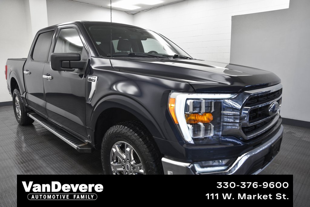 VANDEVERE CADILLAC --- THIS VEHICLES IS LOCATED AT OUR NEW LOCATION!!!!! VANDEVERE CADILLAC IS RIGHT IN DOWNTOWN AKRON. CONTACT US AT 330-376-9600 OR COME VISIT US AT 111 W MARKET ST AKRON, OH 44303. THANKS FOR CHOOSING VANDEVERE CADILLAC!APPLE/ANDROID CARPLAY, AUTOMATIC EMERGENCY BRAKING, BACKUP CAMERA, BLUETOOTH, CRUISE CONTROL, FORWARD COLLISION ALERT, HEATED SEATS, LANE DEPARTURE WARNING, PANORAMIC ROOF, POWER SEAT, PREMIUM WHEELS, REMOTE START, TOUCH SCREEN CONTROLS, TOW PACKAGE, WARRANTY FOREVER, 10-Way Power Driver & Passenger Seats, 2-Bar Style Grille w/Chrome 2 Minor Bars, 8 Productivity Screen in Instrument Cluster, ABS brakes, Alloy wheels, Auto-Dimming Rear-View Mirror, Bright Polished Step Bars, Chrome Door & Tailgate Handles w/Body-Color Bezel, Chrome Single-Tip Exhaust, Class IV Trailer Hitch Receiver, Compass, Dual Zone Electronic Automatic Temperature Control, Electronic Stability Control, Equipment Group 302A High, Heated door mirrors, Heated Front Seats, Illuminated entry, Intelligent Access w/Push Button Start, LED Reflector Headlamps, LED Sideview Mirror Spotlights, Low tire pressure warning, Onboard 400W Outlet, Power Glass Heated Sideview Mirrors, Radio: AM/FM SiriusXM w/360L, Rear Under-Seat Storage, Remote keyless entry, Remote Start System w/Remote Tailgate Release, SecuriCode Drivers Side Keyless-Entry Keypad, SYNC 4 w/Enhanced Voice Recognition, Traction control, Twin Panel Moonroof, Wheels: 18 Chrome-Like PVD, Wrapped Steering Wheel, XLT Chrome Appearance Package, Zone Lighting. Clean CARFAX.Blue 2023 Ford F-150 4D SuperCrew XLT 10-Speed Automatic 3.5L V6 EcoBoost