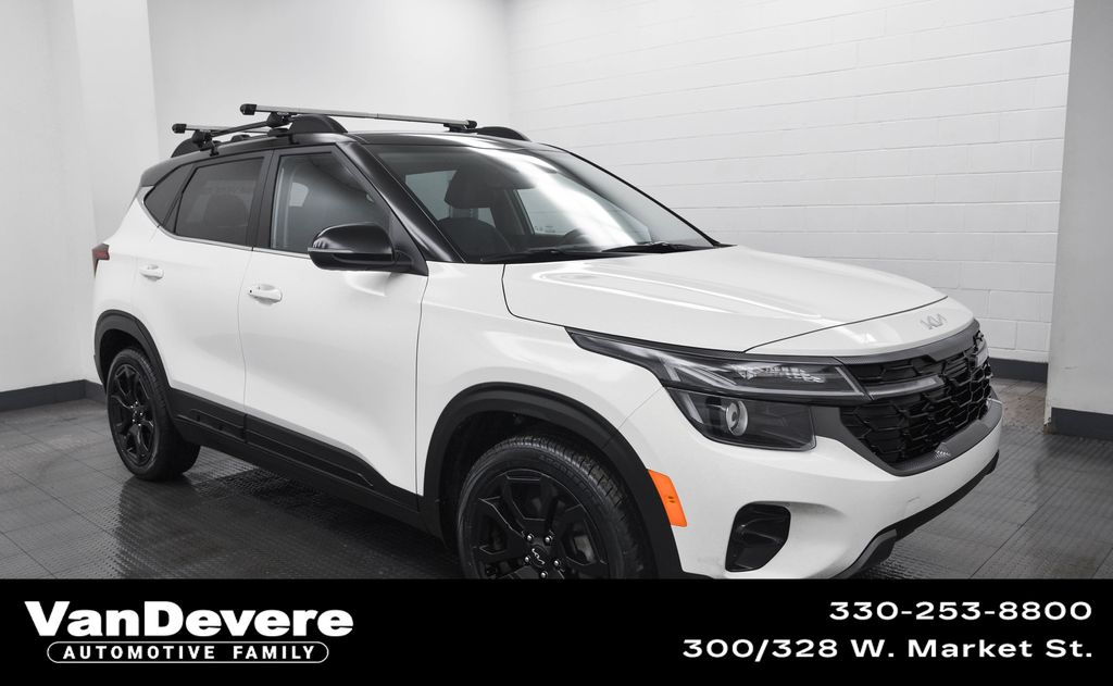 Clear White/Black Roof 2024 Kia Seltos 4D Sport Utility X-Line AWD 8-Speed Automatic I4